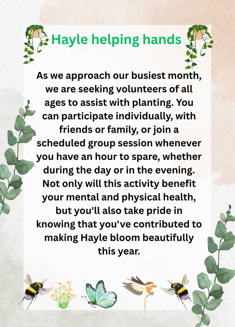 Looking to volunteer or participate in one of our events? Stay tuned to this page for opportunities to join us. Whether you're a pro gardener or just starting out, there's a place for everyone at Hayle In Bloom.